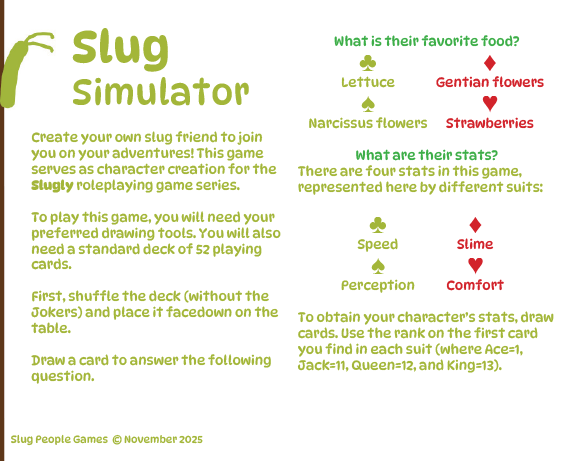 | Tags | Cozy, nature, One-page, Sci-fi, Singleplayer, Solo RPG, Tabletop role-playing game, weird |