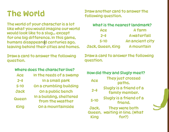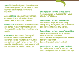Turned the last page into a character sheet. And added some examples to page 2 of actions you can take using your stats!